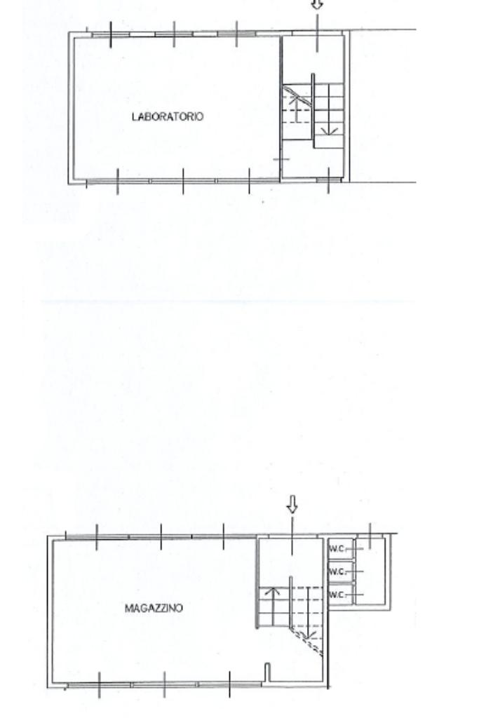 Il laboratorio proposto in locazione dispone di una superficie interna di circa 150 metri quadrati disposti su due livelli da 75 metri quadrati ciascuno e presenta poi un'area esterna comune di circa 200 metri quadrati.