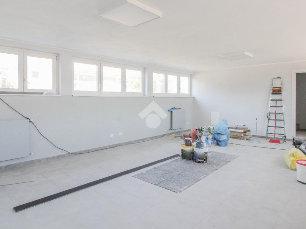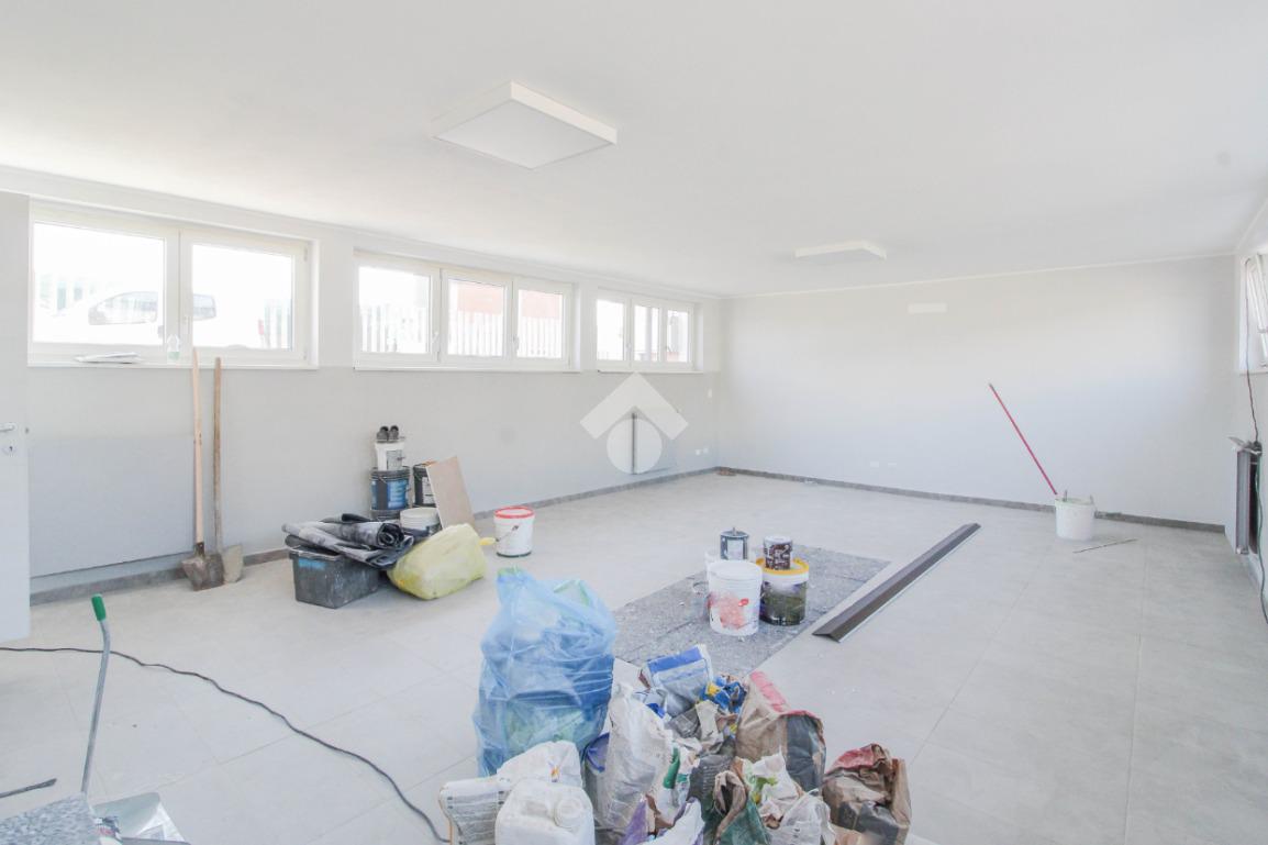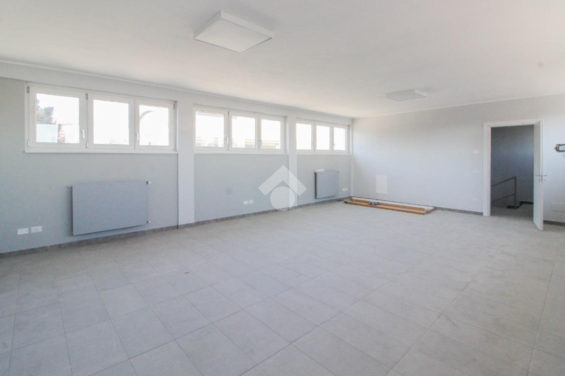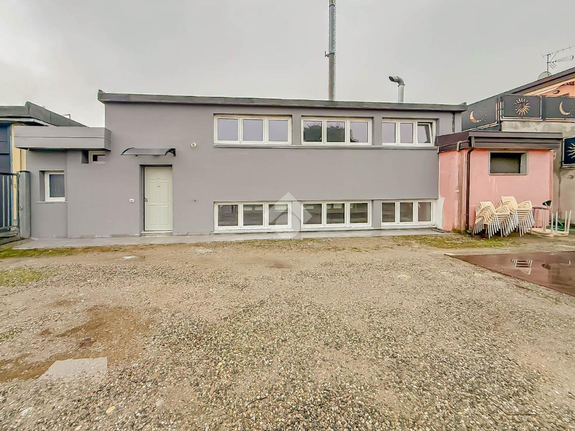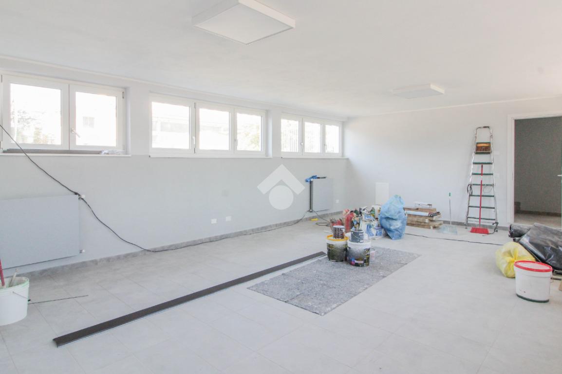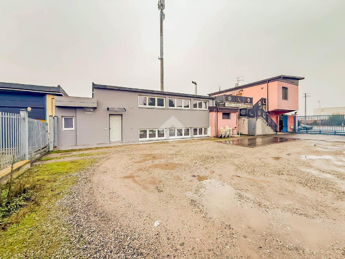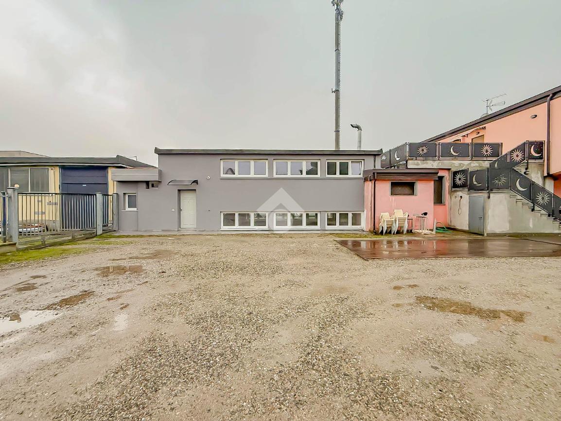La soluzione proposta in affitto ha una superficie complessiva di 150 metri quadrati, raggiunge un'altezza di 2,75 metri circa ed è disposta su due piani di un edificio di due livelli; esternamente possiede uno spazio di circa 200 metri quadrati locato in comune, completo di un passo carraio. La struttura è servita dall'impianto elettrico, d'illuminazione e di riscaldamento, possiede inoltre una predisposizione per l'impianto di condizionamento. Completa la soluzione un servizio igienico privato con annesse comode docce. La proprietà risulta essere recintata esternamente e in ottime condizioni data la completa recente ristrutturazione dell'immobile avvenuta nell'anno 2025.