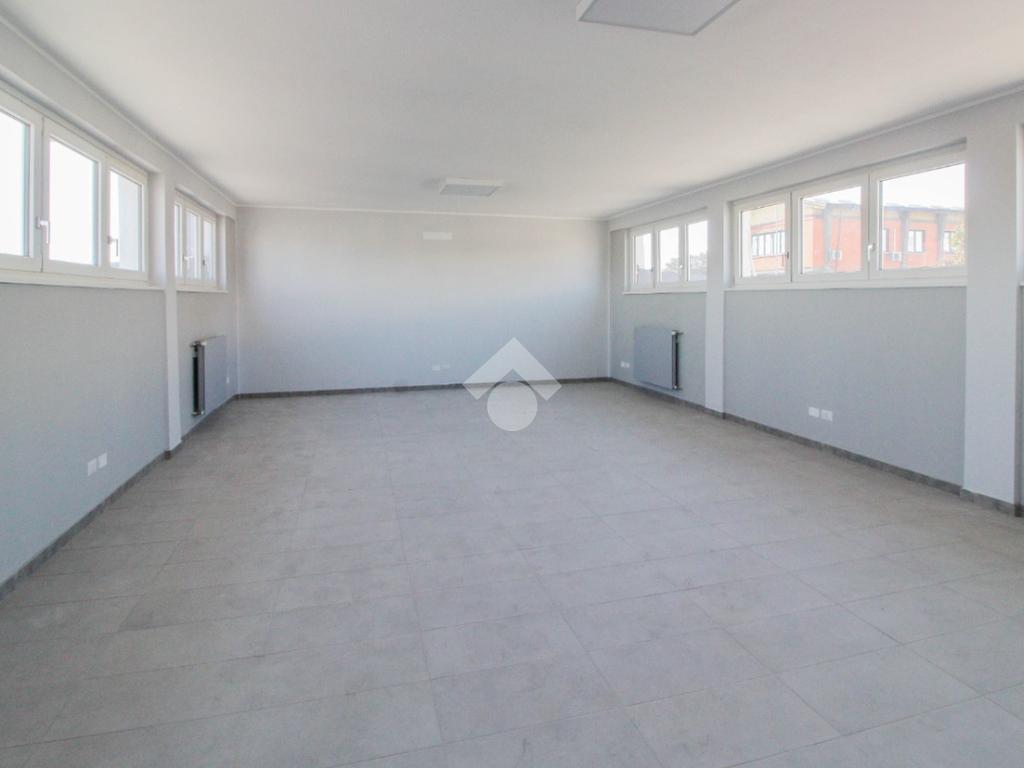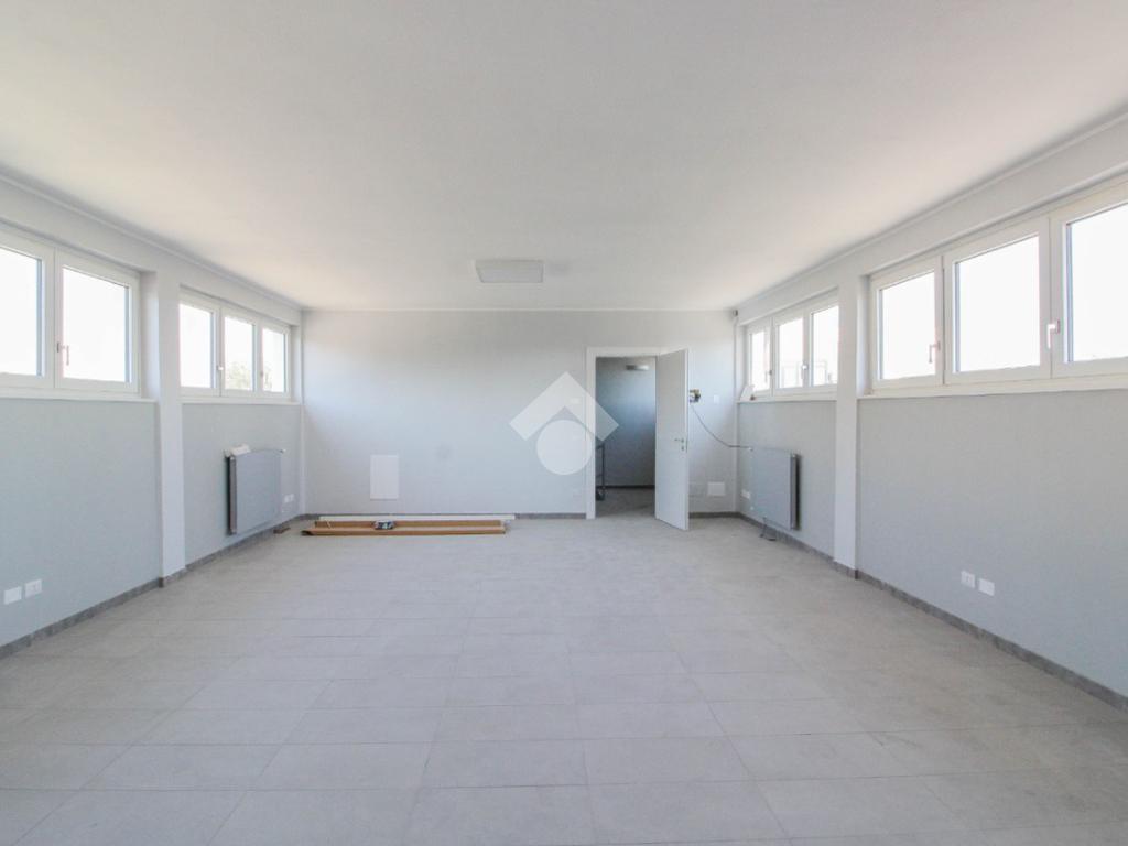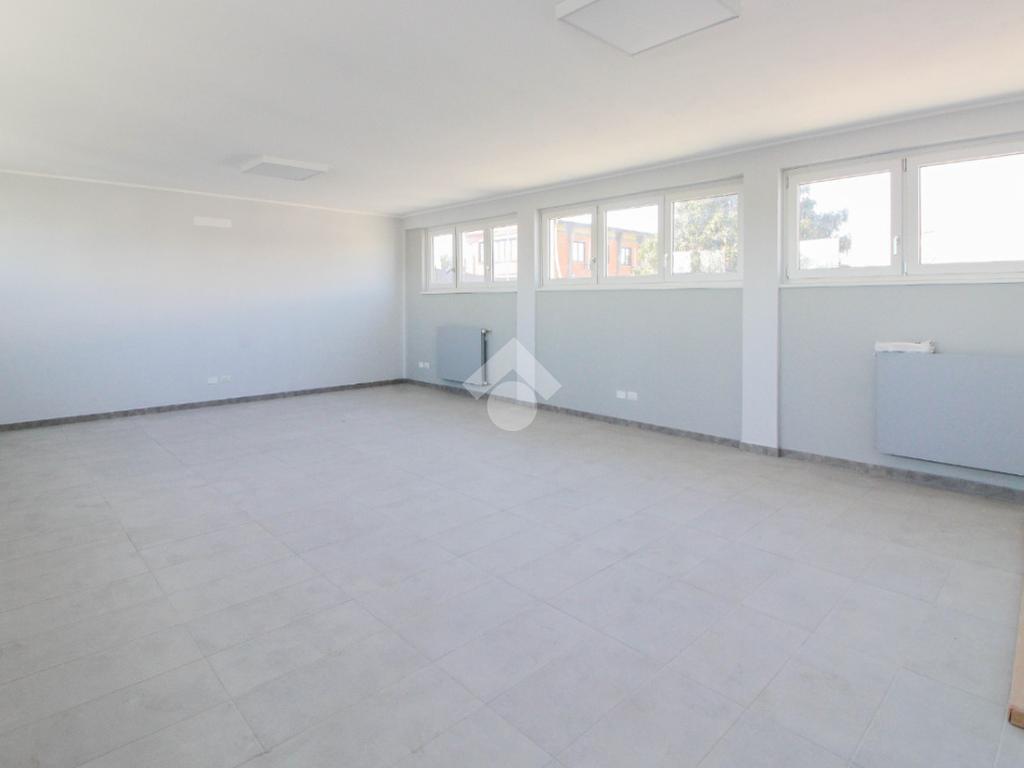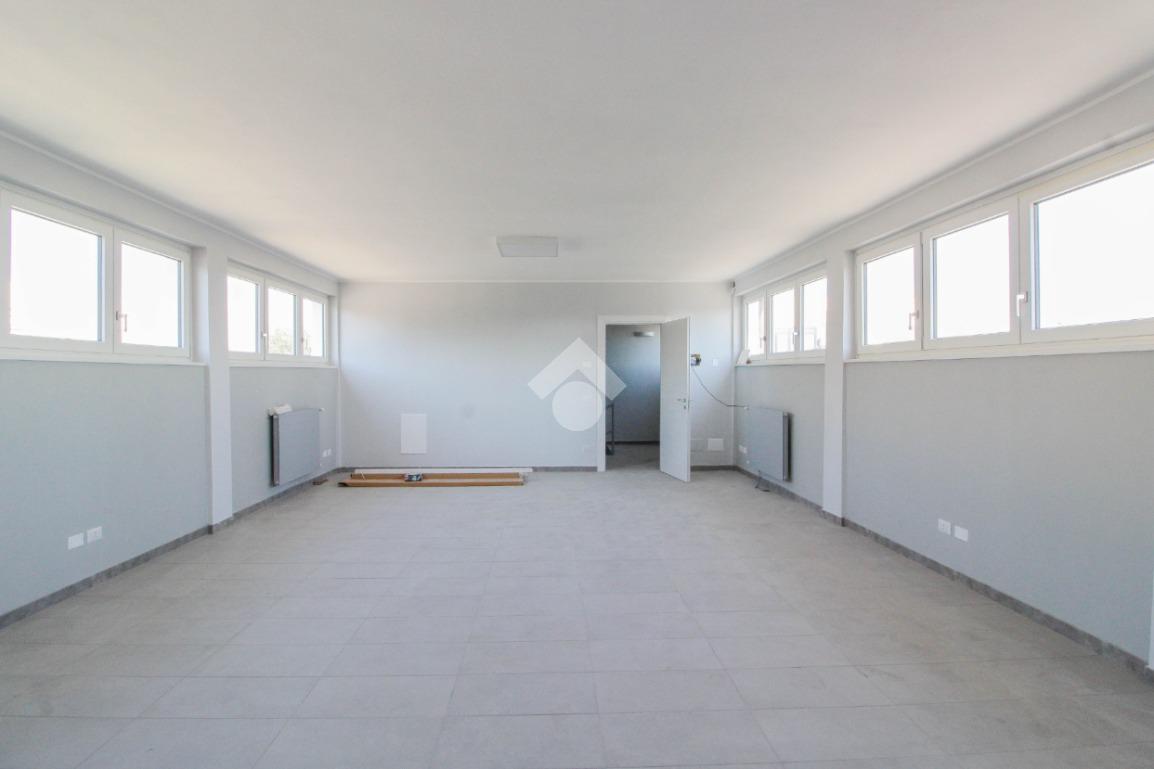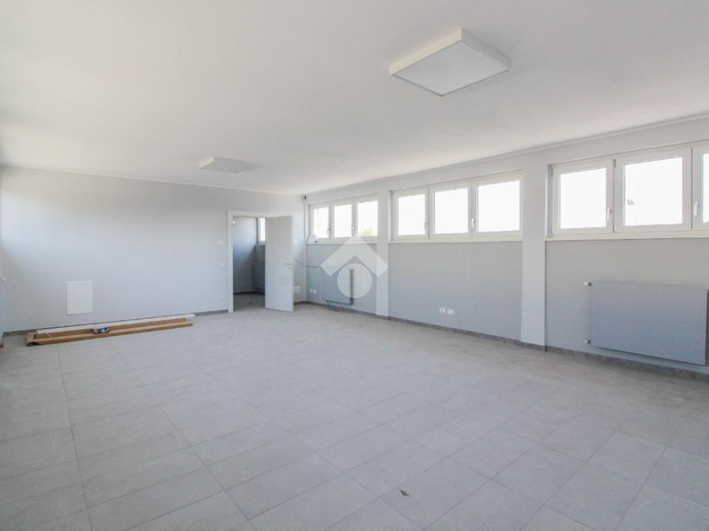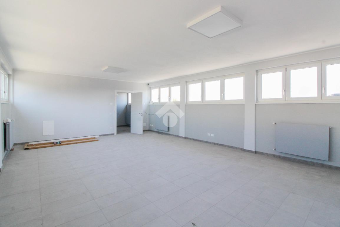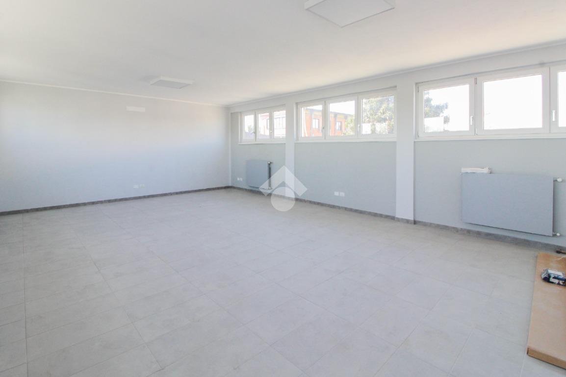 La soluzione proposta in affitto ha una superficie complessiva di 150 metri quadrati, raggiunge un'altezza di 2,75 metri circa ed è disposta su due piani di un edificio di due livelli; esternamente possiede uno spazio di circa 200 metri quadrati locato in comune, completo di un passo carraio. La struttura è servita dall'impianto elettrico, d'illuminazione e di riscaldamento, possiede inoltre una predisposizione per l'impianto di condizionamento. Completa la soluzione un servizio igienico privato con annesse comode docce. La proprietà risulta essere recintata esternamente e in ottime condizioni data la completa recente ristrutturazione dell'immobile avvenuta nell'anno 2025.